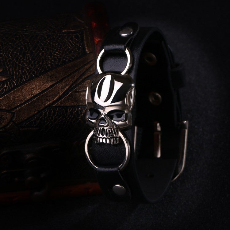 Men's Genuine Leather buckle Rock Skull Bracelet